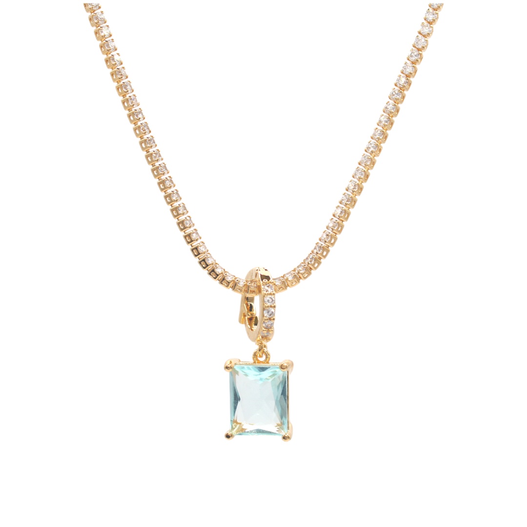 Pingente Clic Semi Cravejada com Pedra Quadrada Agua Marinha