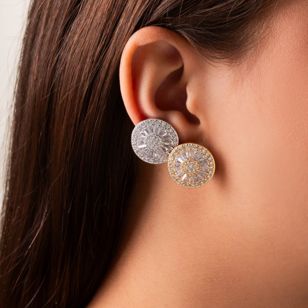Este brinco circular, popularmente conhecido como "Brinco Pizza", é cravejado com microzircônias que criam um efeito de brilho intenso e luxuoso. O design central em formato de estrela ou sol, combinado com o acabamento em dourado e prata, garante uma peça de destaque, perfeita para eventos especiais ou para adicionar um toque de glamour ao dia a dia. Uma joia que exala sofisticação. Dados Técnicos: Peso 7,6g Dimensões: 2x2x0,2