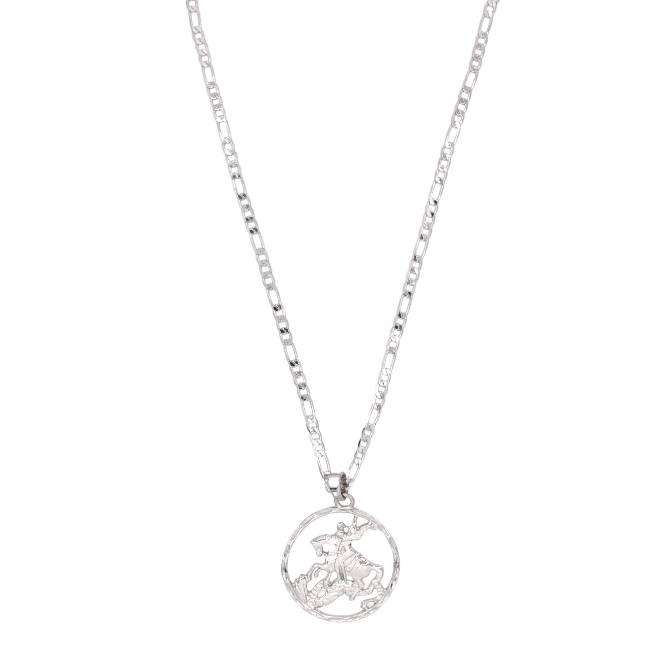 Colar Corrente Fígaro Com Pingente São Jorge Banhado A Ródio Tam 70Cm