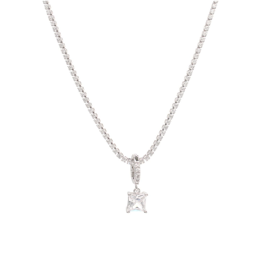 Pingente Clic Semi Cravejada com Pedra Retangular Zircônia pequeno